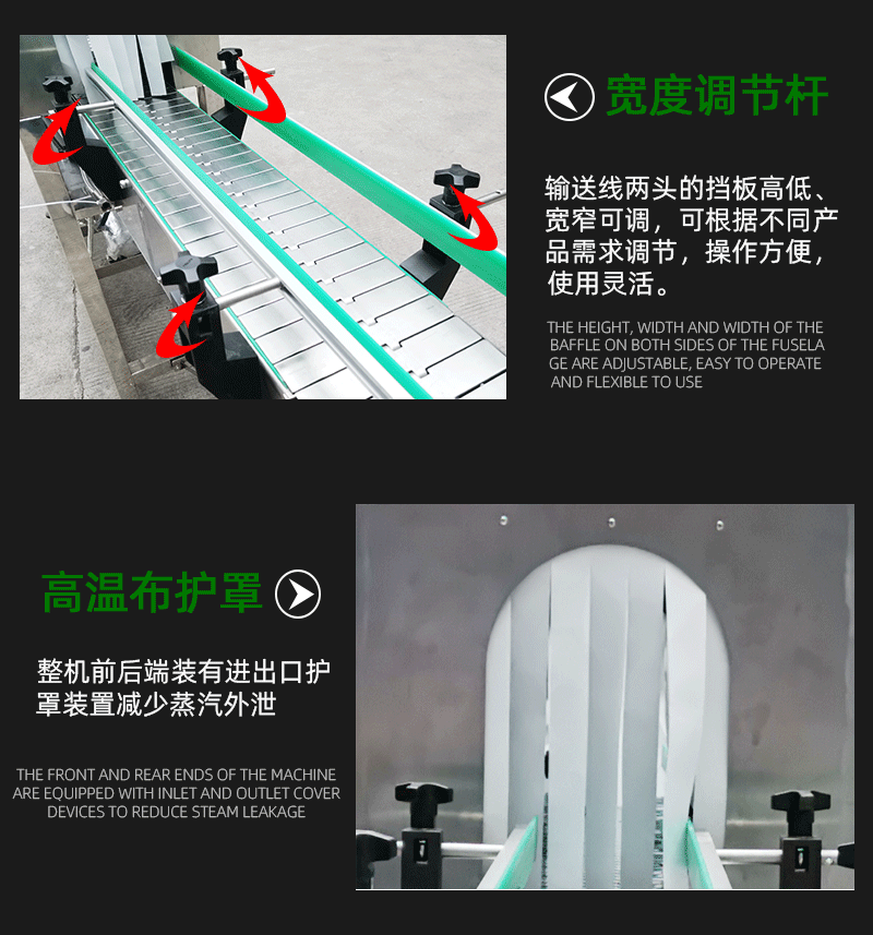 • 精確調(diào)整:蒸汽出汽量、方向和蒸汽管方向無(wú)需工具調(diào)節(jié),并可根據(jù)瓶身形狀精確調(diào)整蒸汽角度,以獲得最佳收縮效果,并同時(shí)降低瓶身受熱變形的可能,對(duì)于不同及不規(guī)則圓瓶、方瓶、扁瓶等瓶形,調(diào)整簡(jiǎn)潔,適用性強(qiáng)123.