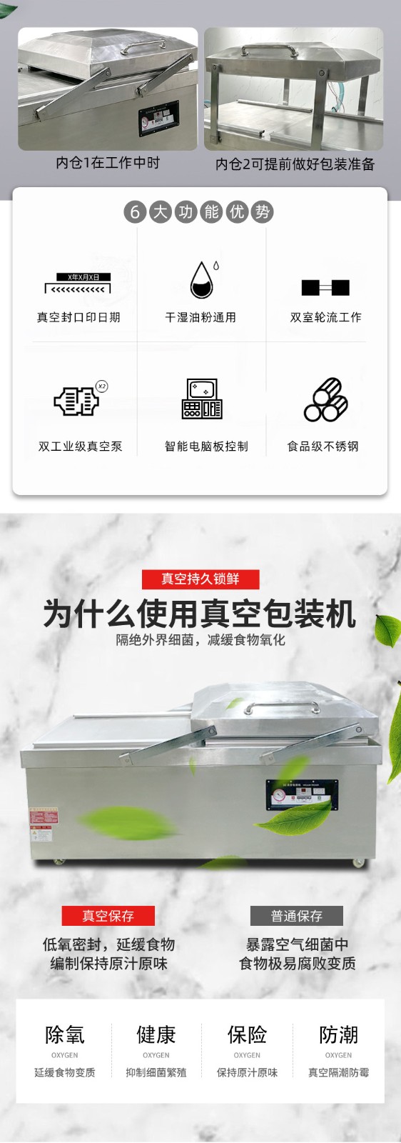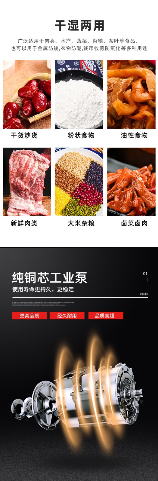• 真空泵規(guī)格:這是決定效率的基礎(chǔ)。真空泵的抽氣速率(單位 m3/h)越快,達到目標(biāo)真空度的時間就越短,單次包裝周期隨之縮短。