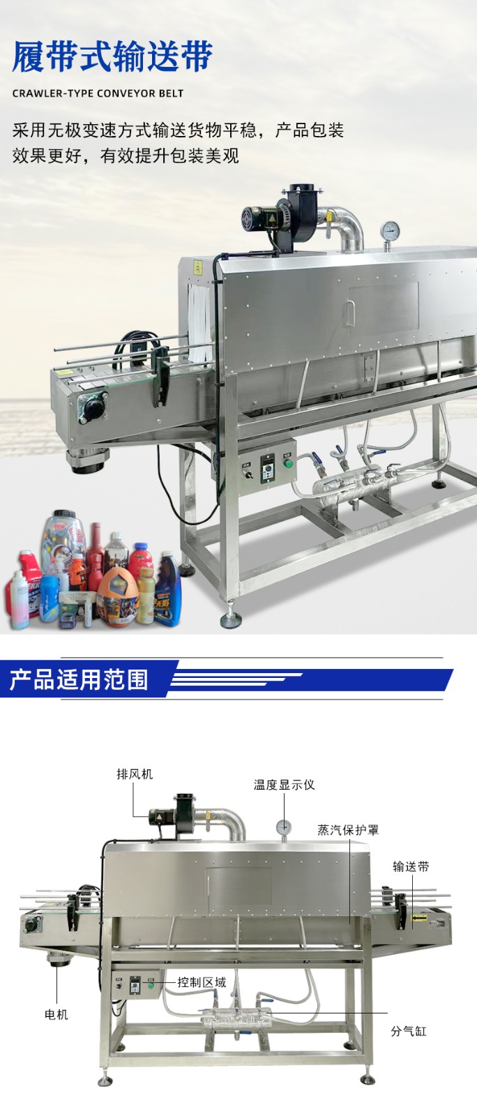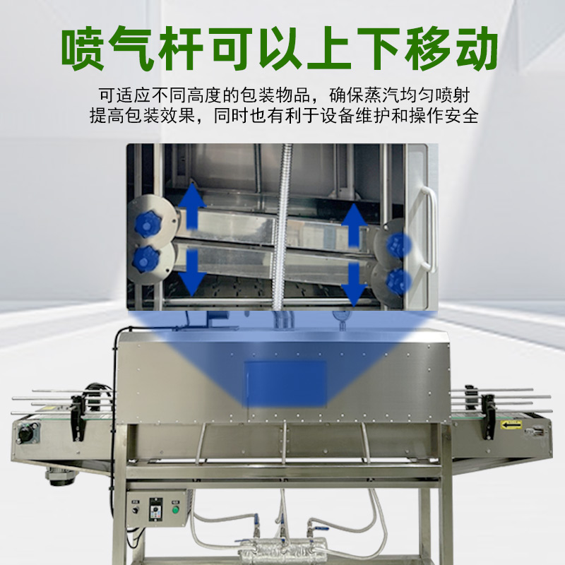 蒸汽收縮機的核心工作原理是利用蒸汽的均勻熱量,使熱收縮膜受熱后緊密包裹產(chǎn)品,最終完成密封定型的自動化包裝過程。