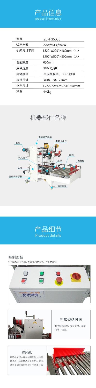L型半自動角邊封箱機 ZB-FG500L